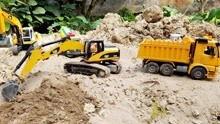 挖掘机和翻斗车的“默契配合”